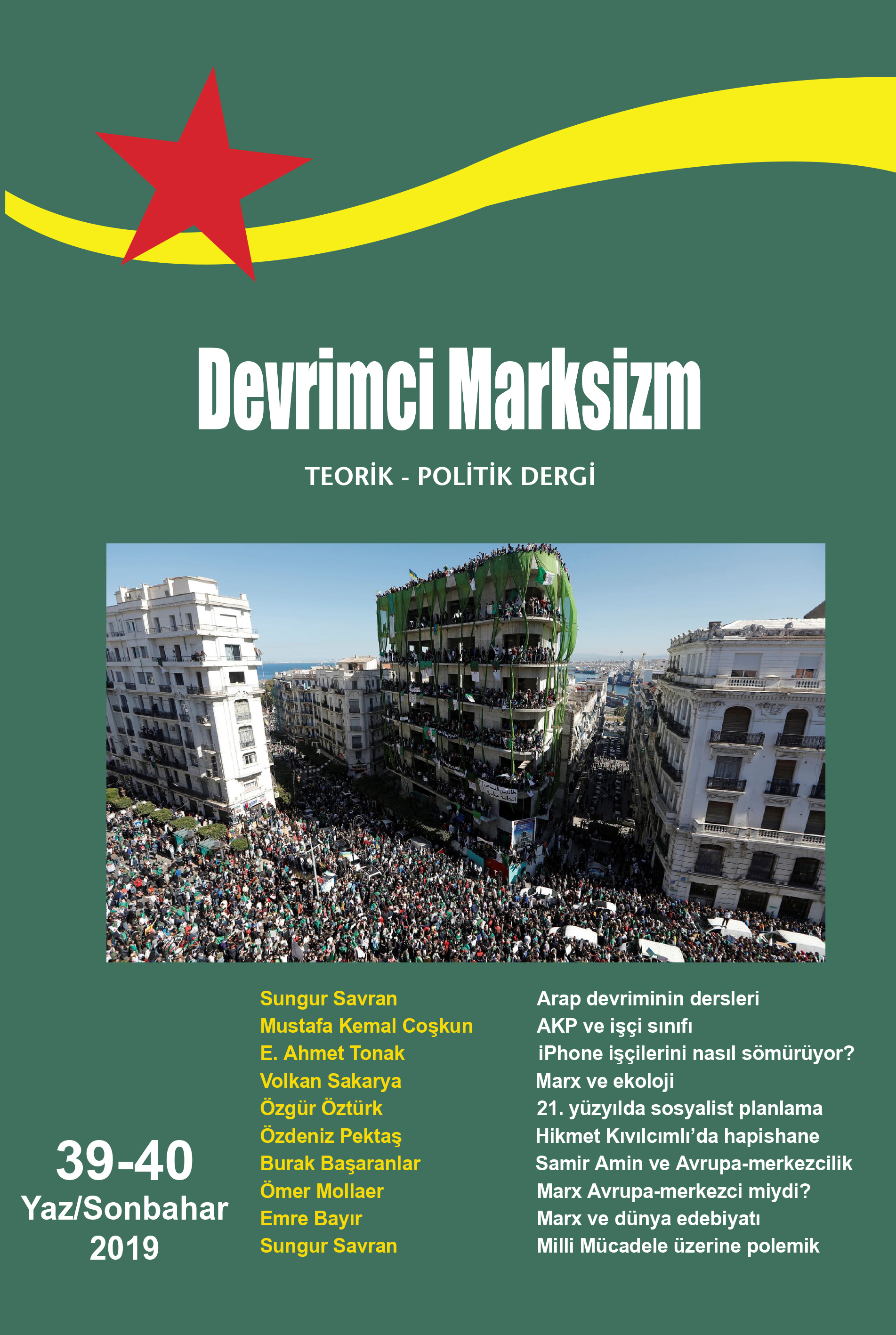 Bu sayımızın ilk yazısı doğrudan doğruya bu konuya eğiliyor. 38. sayımızın tanıtım yazısında, Arap dünyasında devam etmekte olan iki devrime ilişkin bir yazının yer almamasına hayıflanıyor ve bu sayı için Sudan ve Cezayir devrimlerini inceleyen bir yazının sözünü veriyorduk. Sungur Savran’ın yazısı bu vaadi yerine getiriyor. Yazının ilk bölümü iki ülkedeki devrimlerin gelişme sürecini soğukkanlı bir biçimde hikâye ediyor. Buna karşılık ikinci bölüm Arap devriminin sadece bu ikinci kuşağında değil, Mısır ve Tunus’un merkezde olduğu birinci kuşağında da yaşadığı ve henüz aşamadığı sorunları ayrıntısıyla tartışıyor. Savran ilk kuşak Arap devrimlerini de Devrimci Marksizm’in 13-14. ve 17-18. sayılarında incelemişti. Bu yazı, orada sergilenen analizle de bağlanarak 21. yüzyılın bu ilk büyük devrimci dalgasından geleceğe ilişkin, en çok da Türkiye devrimine ilişkin sonuçlar çıkartıyor. Esas ulaştığı sonuç ise, sorunların, ancak her ülkede bir devrimci proletarya partisi ve dünya çapında bir devrimci Enternasyonal sayesinde çözülebileceği.